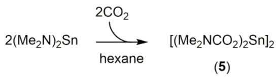 - Stewart, C.A.; Dickie, D.A.; Tang, Y.; Kemp, R.A. Insertion reactions of CO2, OCS, and CS2 into the Sn–N bonds of (Me2N)2Sn: NMR and X-ray structural characterization of the products. Inorg. Chim. Acta 2011, 376, 73–79. [Google Scholar] [CrossRef]