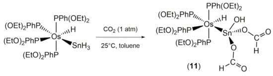 - Albertin, G.; Antoniutti, S.; Bacchi, A.; Pelizzi, G.; Zanardo, G. Synthesis and reactivity of trihydridostannyl complexes of ruthenium and osmium. Organometallics 2008, 27, 4407–4418. [Google Scholar] [CrossRef]