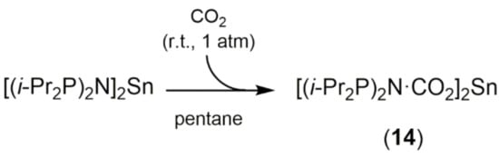 - Sita, L.R.; Babcock, J.R.; Xi, R. Facile metathetical exchange between carbon dioxide and the divalent group 14 bisamides M[N(SiMe3)2]2 (M = Ge and Sn). J. Am. Chem. Soc. 1996, 118, 10912–10913. [Google Scholar] [CrossRef]