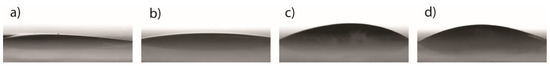 Water contact angle (WCA) measurements were carried out using a KSV Cam 200 (KSV Instruments Ltd., Helsinki, Finland) contact angle goniometer with 4 µL deionized water droplet at a room temperature. A Young–Laplacian fitting protocol was utilized to calculate the WCA value from the measured droplet profile.