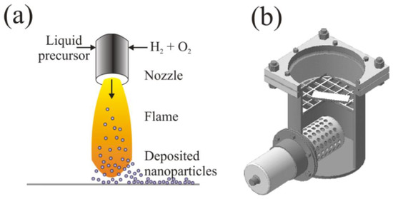 - Mäkelä, J.M.; Haapanen, J.; Harra, J.; Juuti, P.; Kujanpää, S. Liquid Flame Spray—A Hydrogen-Oxygen Flame Based Method for Nanoparticle Synthesis and Functional Nanocoatings. KONA Powder Part. J. 2017, 34, 141–154. [Google Scholar] [CrossRef]