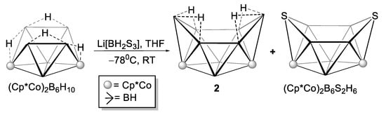 2.2. Reactivity of [(Cp*Co)2B6H12] with Li[BH2S3]