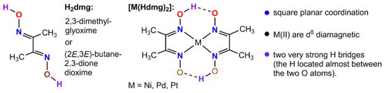 General schematic of the structures of [M(Hdmg)2] (M = Ni, Pd, Pt), with numbering.
