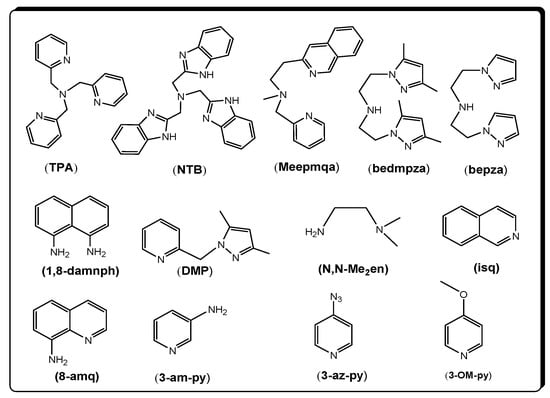 - Li, H.; Zhao, H.Y.; Zhang, S.G. (Dicyanamido)[tris-(2-pyridylmeth-yl)amine]zinc(II) perchlorate. Acta Crystallogr. Sect. E Struct. Rep. Online 2008, 64, m495. [Google Scholar] [CrossRef] [Green Version]