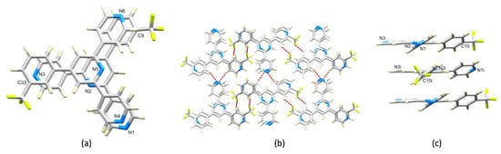 - Yi, H.; Albrecht, M.; Pan, F.; Valkonen, A.; Rissanen, K. Stacking of Sterically Congested Trifluoromethylated Aromatics in their Crystals—The Role of Weak F···π or F···F Contacts. Eur. J. Org. Chem. 2020, 6073–6077. [Google Scholar] [CrossRef]