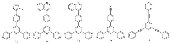 - Housecroft, C.E. Divergent 4,2′:6′,4″- and 3,2′:6′,3″-Terpyridines as Linkers in 2- and 3-Dimensional Architectures. CrystEngComm 2015, 17, 7461–7468. [Google Scholar] [CrossRef] [Green Version]