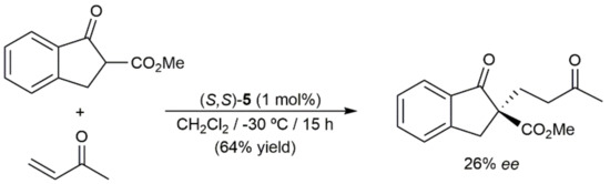 Os-catalyzed asymmetric Michael addition of 2-methoxycarbonyl-1-indanone to 3-buten-2-one.