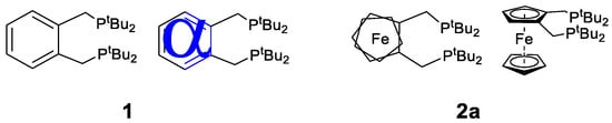 - Vondran, J.; Furst, M.R.L.; Eastham, G.R.; Seidensticker, T.; Cole-Hamilton, D.J. Magic of Alpha: The Chemistry of a Remarkable Bidentate Phosphine, 1,2-Bis(di-tert-butylphosphinomethyl)benzene. Chem. Rev. 2021, 121, 6610–6653. [Google Scholar] [CrossRef]