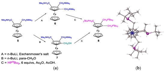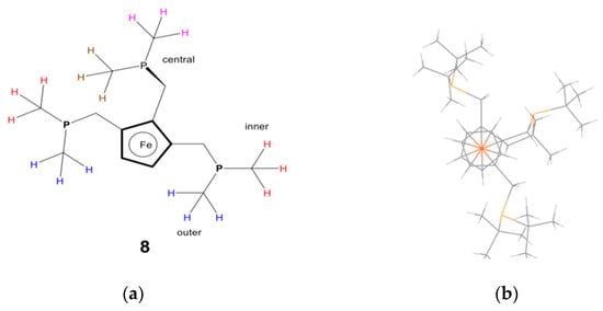 - Butler, I.R.; Horton, P.N.; Fortune, K.M.; Morris, K.; Greenwell, C.; Eastham, G.R.; Hursthouse, M.B. The first 1,2,3-tris(phosphinomethyl)ferrocene. Inorg. Chem. Commun. 2004, 7, 923–928. [Google Scholar] [CrossRef]