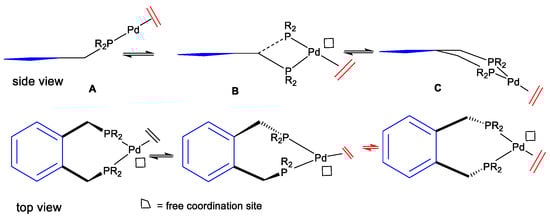 - Ledford, J.; Shultz, C.S.; Gates, D.P.; White, P.S.; DeSimone, J.M.; Brookhart, M. Bond Angle Effects on the Migratory Insertion of Ethylene and Carbon Monoxide into Palladium(II)−Methyl Bonds in Complexes Bearing Bidentate Phosphine Ligands. Organometallics 2001, 20, 5266–5276. [Google Scholar] [CrossRef]