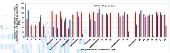 | Compound | T. gondii β-gal IC50 (µM) | [LS; LI] b | SE c | HFF Viability at 2.5 µM (%) d | SD e |