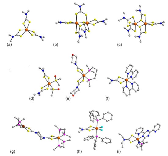 From a structural point of view, dithiocarbamate complexes are of interest precisely because of the range of different heavy element ions to which they can coordinate and the resulting structural motifs. In summary, recent work has uncovered an even more diverse molecular and supramolecular chemistry with a wide variety of structural arrangements.