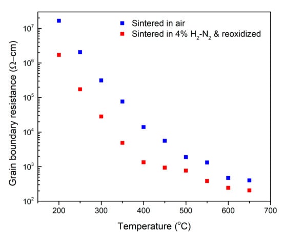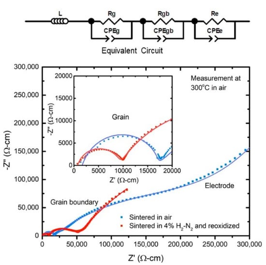 - Guo, X.; Maier, J. Grain boundary blocking effect in zirconia: A Schottky barrier analysis. J. Electrochem. Soc. 2001, 148, E121. [Google Scholar] [CrossRef]