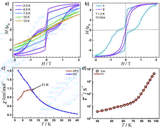 - Goodwin, C.A.P.; Ortu, F.; Reta, D.; Chilton, N.F.; Mills, D.P. Molecular Magnetic Hysteresis at 60 Kelvin in Dysprosocenium. Nature 2017, 548, 439–442. [Google Scholar] [CrossRef] [PubMed]