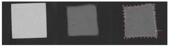 Axial view of micro computed tomography images within the resin–dentin interface of representative total-etch resin–dentin bonded specimens after 7 days of incubation in media containing S. mutans and L. rhamnosus. Left: µCT image of intact resin, 21.25 µm above the interface; Middle: µCT image of demineralized/cavitated dentin, 42.5 µm below the interface; Right: µCT image of interface with areas of demineralization (white line) and cavitation (red line) [78].
