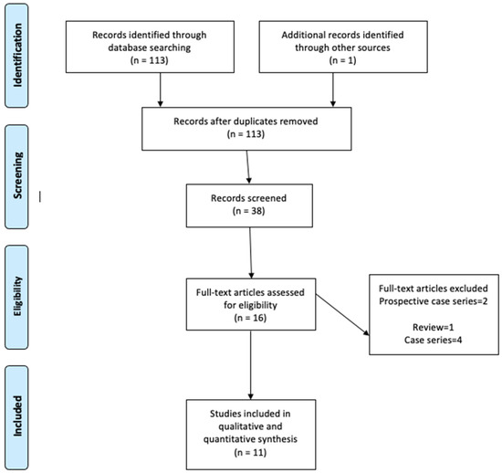 We identified 11 articles that met our inclusion criteria (number of extracted teeth = 1028, physics forceps = 514, conventional forceps = 514) [15,16,17,18,19,20,21,22,23,24,25]. A diagram for the study selection is presented in Figure 1. The study characteristics, and results of primary and secondary outcomes are presented in Table 2.