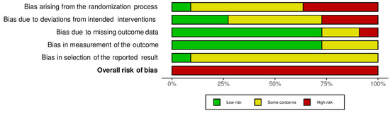 The qualities of the included studies were assessed using criteria from the Cochrane Collaboration’s Handbook (Cochrane Handbook for Systematic Reviews of Interventions Version 5.1.0, Higgins and Greene) using the ROB 2 tool [27,28].
