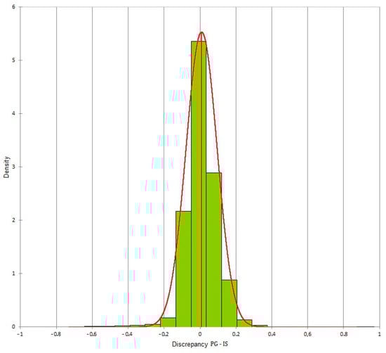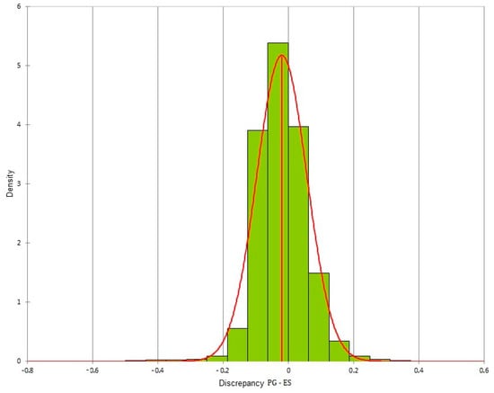 Histogram of the discrepancy between photogrammetry and intraoral scanner.
