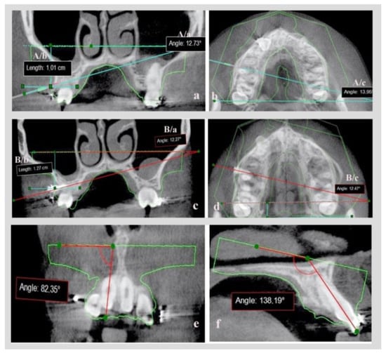 Figure 5d: measurement set B/c = axial angle). By comparing the A and B sets of measurements, and after proper statistical analysis, the accuracy of the mini-implants’ placement could be evaluated after utilization of CBCT or not.