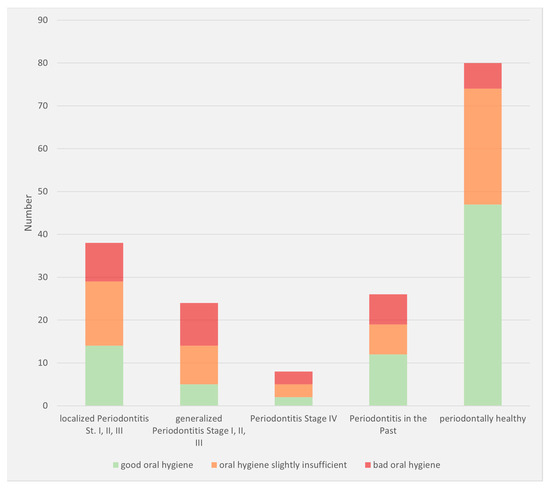 Oral hygiene status based on periodontitis manifestation (number: number of patients).