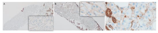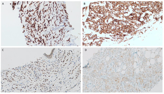 - Haller, F.; Skalova, A.; Ihrler, S.; Markl, B.; Bieg, M.; Moskalev, E.A.; Erber, R.; Blank, S.; Winkelmann, C.; Hebele, S.; et al. Nuclear NR4A3 Immunostaining Is a Specific and Sensitive Novel Marker for Acinic Cell Carcinoma of the Salivary Glands. Am. J. Surg. Pathol. 2019, 43, 1264–1272. [Google Scholar] [CrossRef]