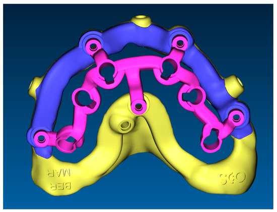 - Fixed component or base template: printed resin (Clear MED610™; Stratasys, Edina, MN, USA), reinforced with milled titanium grade 5 (SINERGIA DISK Ti; Nobil Metal, Bergamo, Italy).