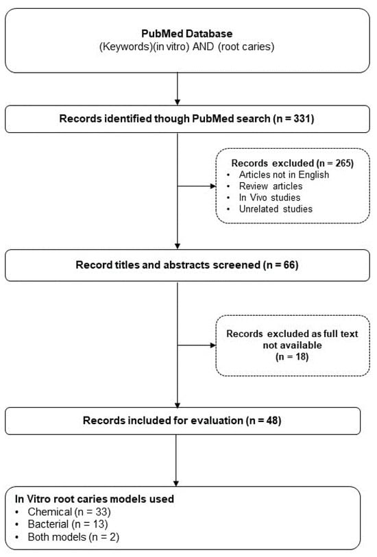 PRISMA flow chart using search terms ‘root caries’ and ‘in vitro’ from 2002 to November 2022 on the PubMed database.