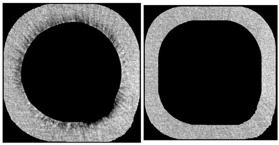 One layer of the selected ROI (left) and the reference region (right) in the EDTA case root.