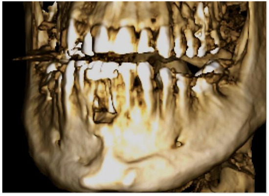 The decision to preserve the mandibular anterior teeth was made despite the given circumstances, which would have been a reason for extraction, because of the high success rate for apicoectomies reported in the literature. Depending on the study, the success rate 5 years after an apicoectomy ranged from 57 to 78% [24,27,28]. In this case, a high probability of success can be assumed due to the root anatomy and good accessibility of the mandibular teeth. In addition, the patient’s age argued for tooth preservation rather than implant placement. The systematic review by Tomasi et al. defined a prognosis for tooth loss between 1 and 3.5% over 10 to 30 years, while the rate for implant loss was between 1 and 18% over 10 years [29].