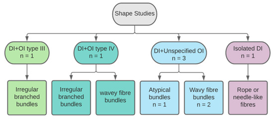 Categorisation of studies reporting on collagen shape by DI and OI types.