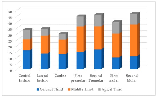 APA StyleRazumova, S., Brago, A., Barakat, H., Serebrov, D., Guryeva, Z., Parshin, G. S., & Troitskiy, V. I. (2023). Evaluation of Dentinal Thickness and Remaining Dentine Volume around Root Canals Using Cone-Beam Computed Tomography Scanning. Dentistry Journal, 11(5), 124. https://doi.org/10.3390/dj11050124