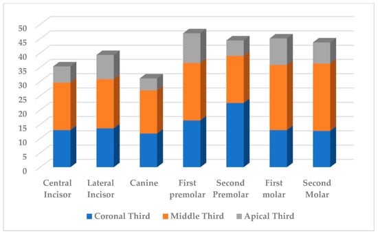 | Coronal Third | Middle Third | Apical Third | Coronal Third | Middle Third | Apical Third | |