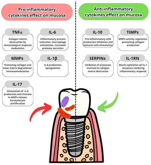 - Farhad, S.Z.; Rezazadeh, F.; Mohammadi, M. Interleukin-17 and Interleukin-10 as Inflammatory and Prevention Biomarkers in Periimplant Diseases. Int. J. Prev. Med. 2019, 10, 137. [Google Scholar] [CrossRef] [PubMed]