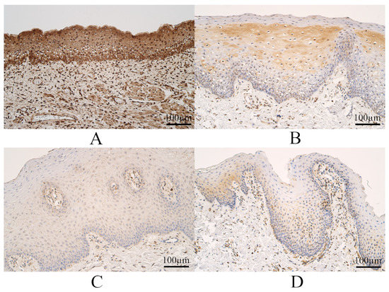 The median number of SOX3 Immunoreactive surface epitheliocytes in BCL tissue was moderate and with a variation from a few to numerous SOX3-positive epitheliocytes. The median number of SOX3 immunopositive connective tissue cells in BCL tissue was moderate—moderate to numerous and with a variation from a few to numerous SOX3 positive connective tissue cells (Figure 2C).