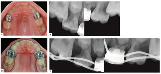 - Huang, W.J.; Childers, N.K. Clinical aid in placing brass wires to treat ectopically erupting permanent first molars. Pediatr. Dent. 1995, 17, 122. [Google Scholar] [PubMed]