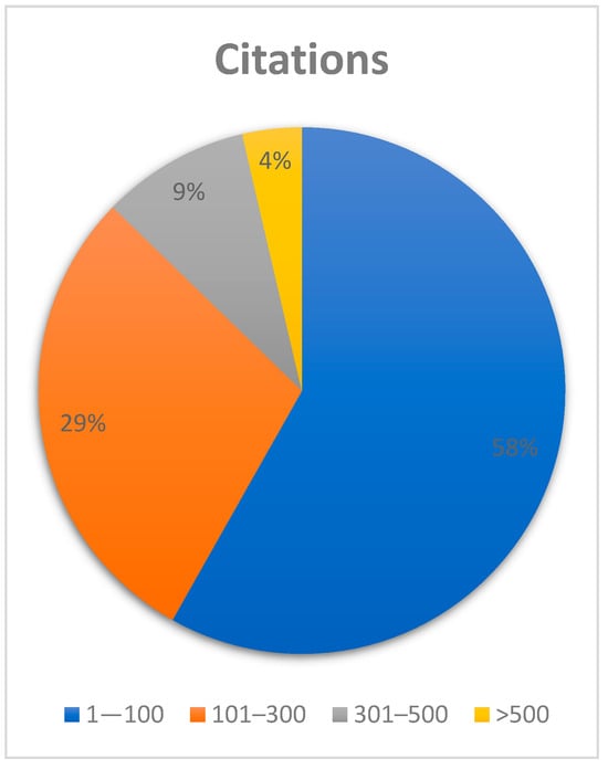 Chart illustrating the percentage distribution of the articles included according to the number of citations in the literature.