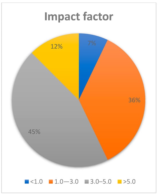 Chart illustrating the distribution of articles based on the journals’ impact factor.