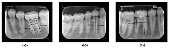 - Eickholz, P.; Hausmann, E. Accuracy of radiographic assessment of interproximal bone loss in intrabony defects using linear measurements. Eur. J. Oral Sci. 2000, 108, 70–73. [Google Scholar] [CrossRef] [PubMed]