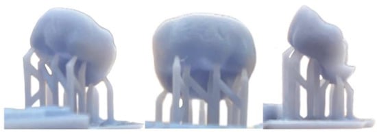 Typically, the resin composites for 3D printing are acrylic-based photopolymers [21]. The addition of ceramic particles and nanoparticles originated a new class named nanohybrid resin composites, allowing the manufacture of permanent dental restorations [22,23]. Other types are self-curing acrylic resin/bis-acryl resin [24]. Adding inorganic fillers modifies the material’s purpose, increasing its flexural strength, elastic modulus, and hardness [25]. Another important characteristic is the thickness of the printed layer; most manufacturers suggest a layer thickness of 50 μm for resin composites to reduce the staircase effect and surface roughness [26]; however, increasing the layer to 100 μm can reduce the printing time by around 40% [27] but may impact the physical and mechanical properties of the printed materials [28].