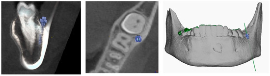 Planning of miniscrew insertion on CBCT (Cone Beam Computed Tomography) from different views.