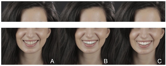 Finally, we assessed each patient’s most attractive smile. We asked the participants to decide which of the three images (the initial and the two simulations) presented the most attractive smile.