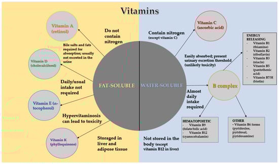 Vitamin classification by solubility and properties (an original scheme reproduced from Hugar et al. [1] and Mataix [2].