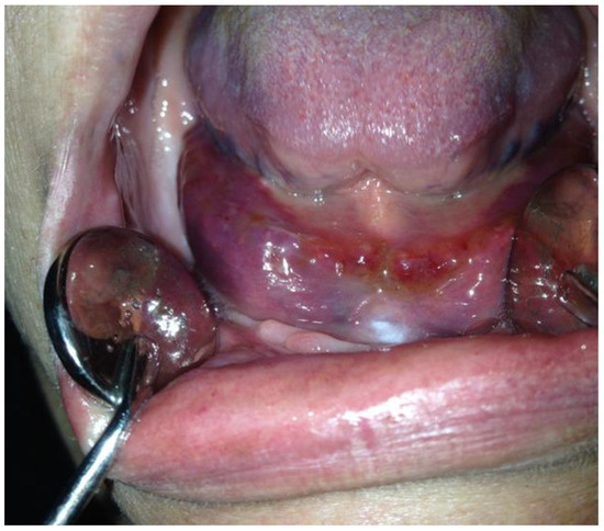 Submucosal bleeding manifesting as a sublingual hematoma in patients with a blood coagulation disorder due to vitamin K deficiency (Courtesy of Prof. Dr. Marinka Mravak-Stipetić).
