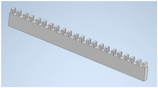 A 4 mm thick aluminum alloy (EN AW 2017, Amari Romania) sheet was used to fabricate the simulated MOD-type cavities. The 3D model of the component was created with cavities (Figure 1) using Autodesk Inventor Professional 2021 (Autodesk, Inc., San Francisco, CA, USA). Using this 3D model as a reference, the parts were manufactured on a CNC milling machine.