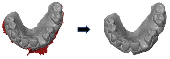 Editing of the scans in terms of trimming the contours.