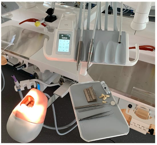 The progress of digital dentistry is increasingly making its way into dental education and training, where digital workflows are replacing analog methods. A classic example of this is the replacement of conventional impressions and lost-wax casting in practical prosthodontic courses with intraoral scans and chairside milling of restorations. This shift allows students to familiarize themselves with modern technologies, while ensuring a standardized quality of work by minimizing variations due to deficient material processing. The use of chairside systems, such as the CEREC® system (Dentsply Sirona©, Bensheim, Germany), marked the beginning of the digitization of dental education. In the preclinical environment, it is employed as a self-assessment tool (PrepCheck®, Dentsply Sirona©, Bensheim, Germany) and provides feedback on students’ preparations. However, conventional phantom heads with attachable and detachable models and interchangeable plastic teeth are still required. Thus, this concept occupies a transitional position between the traditional training approach and an innovative, purely digital approach.
