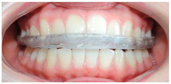 The designs of indications for the occlusal splints were the same for all participants. The splints were placed at the physiology laboratory of the DEPeI, UNAM. The indicated use was for 24 h a day (it could be removed to eat and to brush teeth). The splints were made from a vacuum thermoplastic machine, placing a 0.060″-gauge soft acetate sheet, followed by a 0.080″-gauge rigid acetate. Under clinical conditions, a self-curing acrylic rebase was placed on the occlusal surface of the splint, with the aim of achieving a homogeneous occlusal bite. The dimensions of the splint (interdental disocclusion) were verified, taking care that it did not interfere with any mandibular movement.