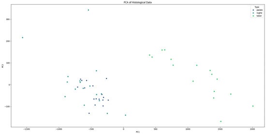 24]. Principal component analysis (PCA) was also performed to visualize the separation between tissue types based on histological features.