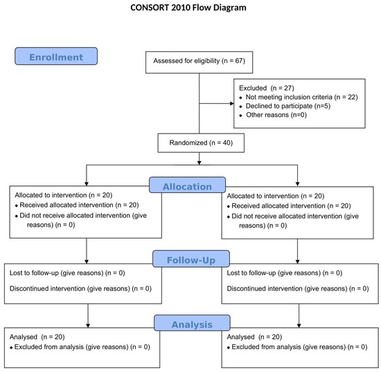 - Schulz, K.F.; Altman, D.G.; Moher, D.; CONSORT Group. CONSORT 2010 Statement: Updated guidelines for reporting parallel group randomised trials. BMC Med. 2010, 8, 18. [Google Scholar] [CrossRef] [PubMed]