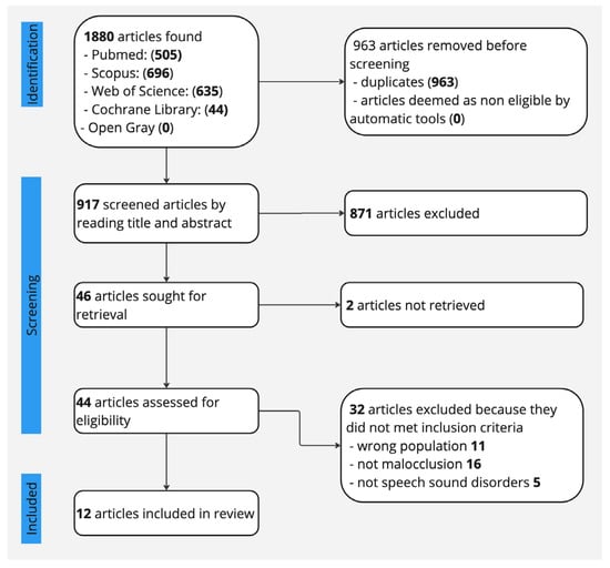 This scoping review was conducted following the “Preferred Reporting Items for Systematic Reviews and Meta-Analyzes extension for conducting Scoping Reviews” (PRISMA-ScR) [30] guidelines. This scoping review was not registered. In order to specify the research strategy parameters, the primary research question has been stated as “Is there a causal relationship between malocclusion and Speech Sound Disorders in pediatric patients without other contributing syndromes?”.